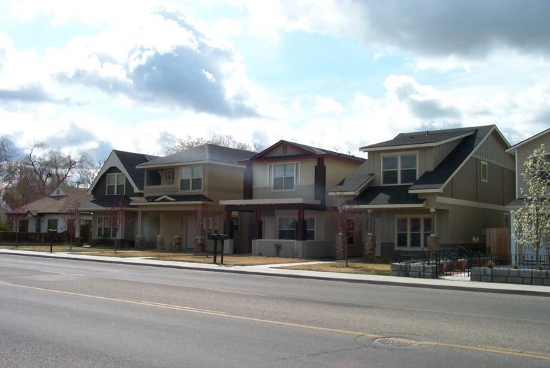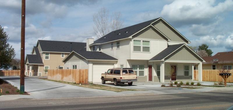 For this project on Latah the goal was to design two duplexes (four homes) to look like there was only two single family homes on the site to make the impact less on the streetscape.